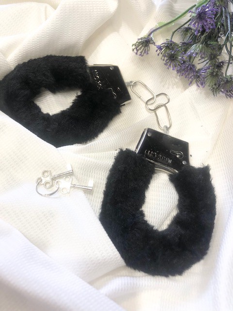 Algemas de Metal com Pelúcia Preta: O Controle Encontra o Conforto.