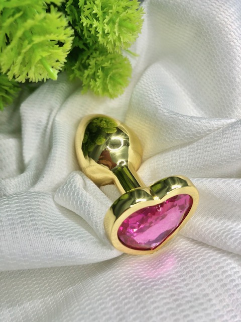 Plug Anal cônico com formato coração na base em metal dourado, este é um acessório erótico diferente que serve como estimulador anal em brincadeiras fetichistas, principalmente em jogos de dominação e submissão. É ideal para dilatação anal, pois sua espessura é diferente em todo seu comprimento!